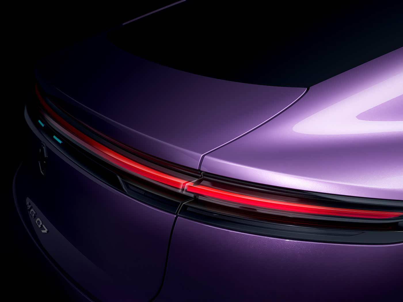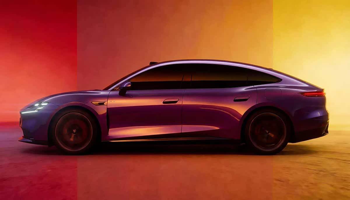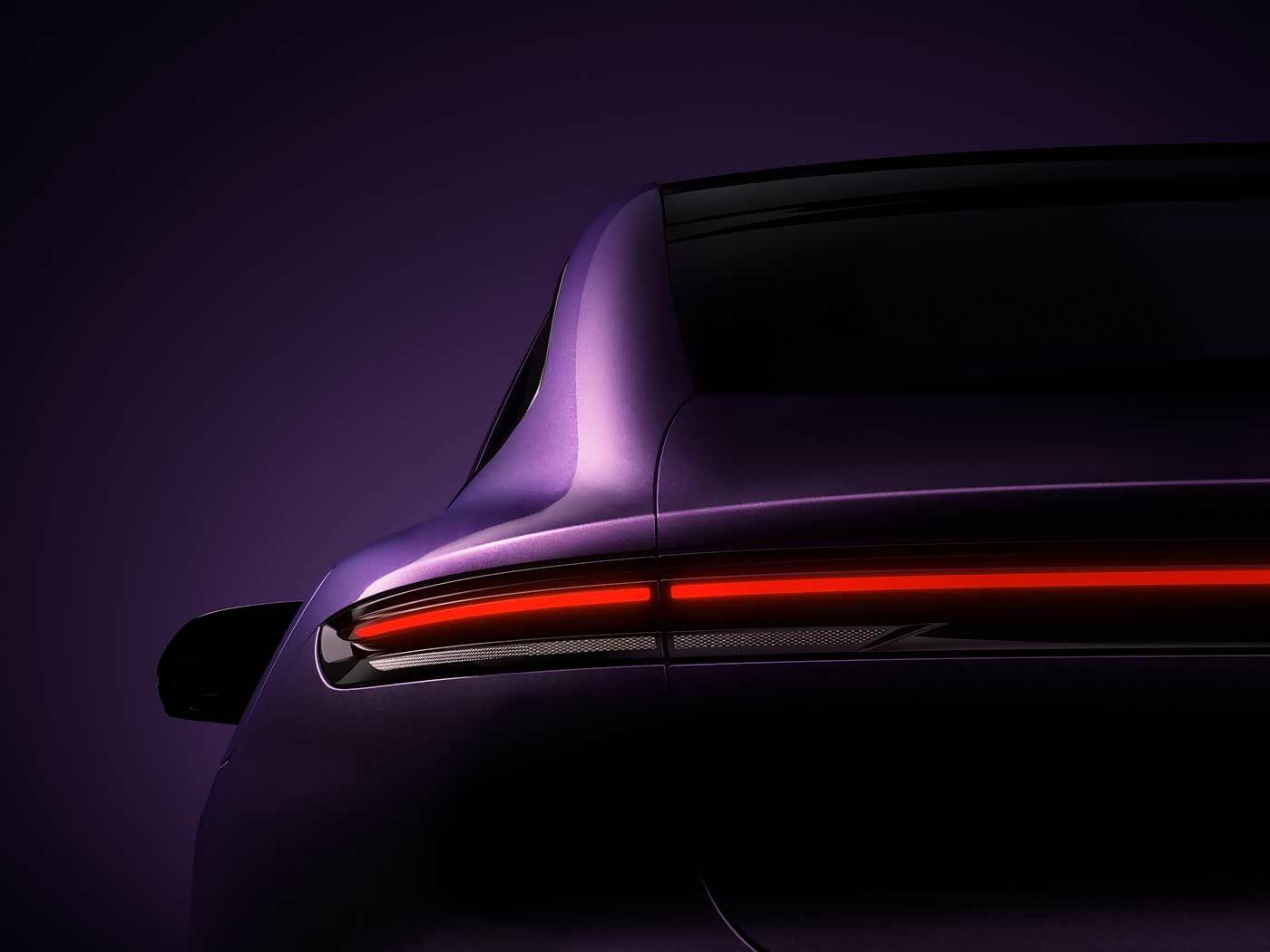 先看一张侧面图,新车定位轿跑,尤其是溜背设计,让整个车身显得颇为动感。这个设计,还真有点保时捷帕拉梅拉的味道。细节方面,新车采用了短前后悬、大轴距设计,大尺寸轮圈和隐藏式门把手也没缺席。还有一点,那就是车顶有激光雷达,所以新车的辅助驾驶值得期待。